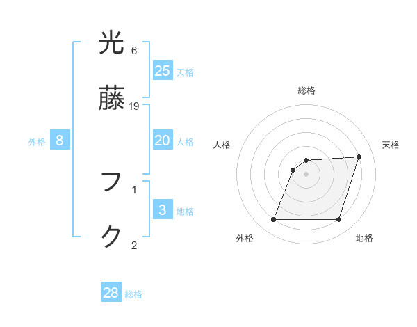 家系が持つ宿命的な運勢を表します。祖先から受け継いだ苗字ですので自分の力が及びません。家柄を象徴します。