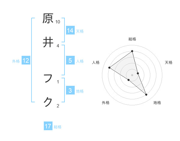 原井 フクさんの総格は17画の4点!