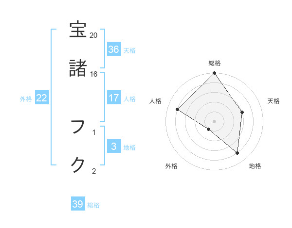 宝諸 フクさんを姓名の画数から五運を鑑定