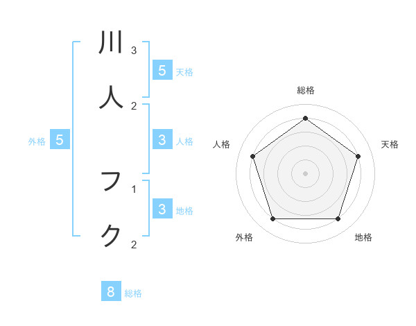 川人 フクさんの天格は5画の4点!