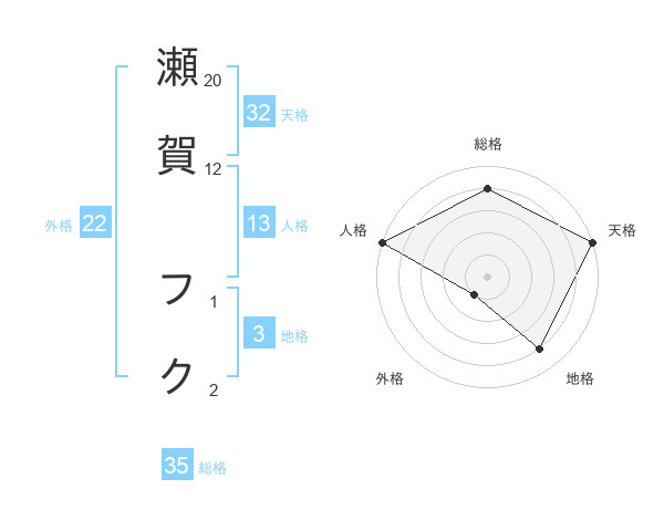 瀬賀 フクさんを姓名の画数から五運を鑑定