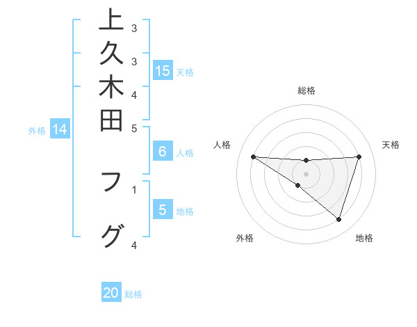 上久木田 フグさんの総格は20画の1点!