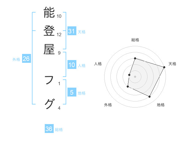 能登屋 フグさんを姓名の画数から五運を鑑定