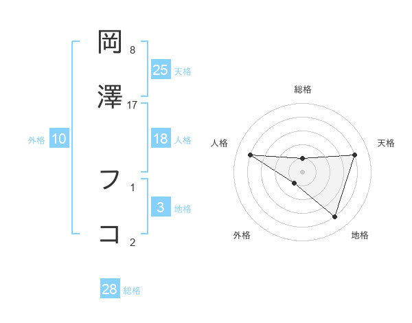 岡澤 フコさんを姓名の画数から五運を鑑定