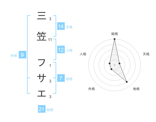 三笠 フサエさんを姓名の画数から五運を鑑定