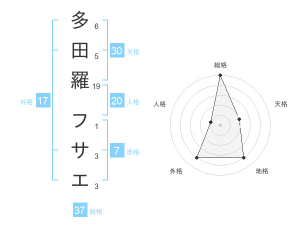 多田羅 フサエさんの総格は37画の5点