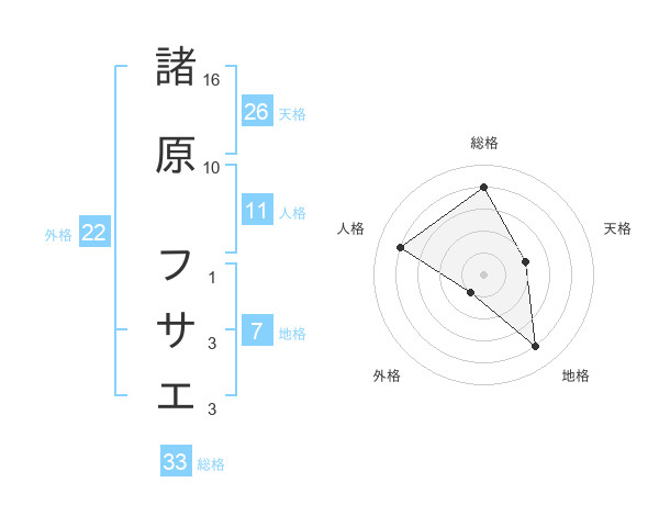 諸原 フサエさんの総格は33画の4点!