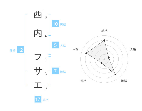 西内 フサエさんの総格は17画の4点!