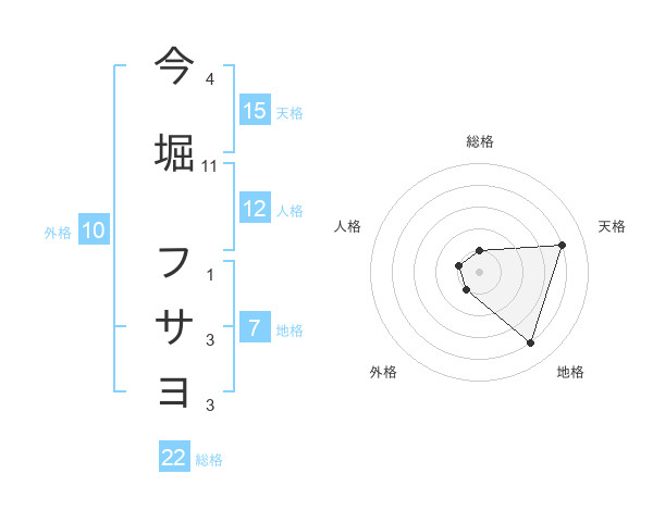 今堀 フサヨさんを姓名の画数から五運を鑑定