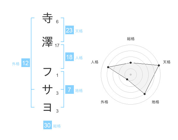 寺澤 フサヨさんの総格は30画の2点!