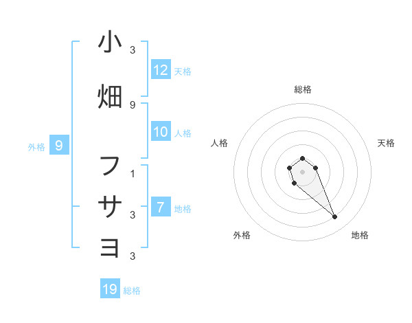 小畑 フサヨさんを姓名の画数から五運を鑑定