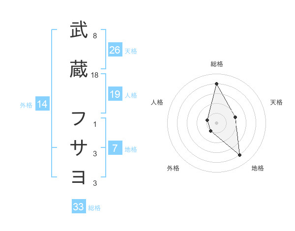 武蔵 フサヨさんを姓名の画数から五運を鑑定