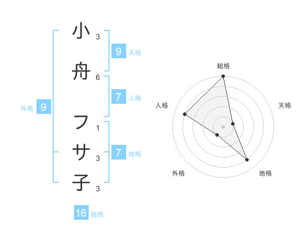 小舟 フサ子さんを姓名の画数から五運を鑑定