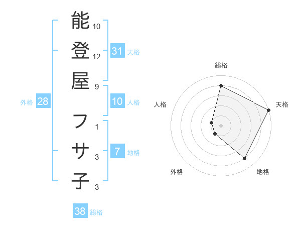 能登屋 フサ子さんを姓名の画数から五運を鑑定