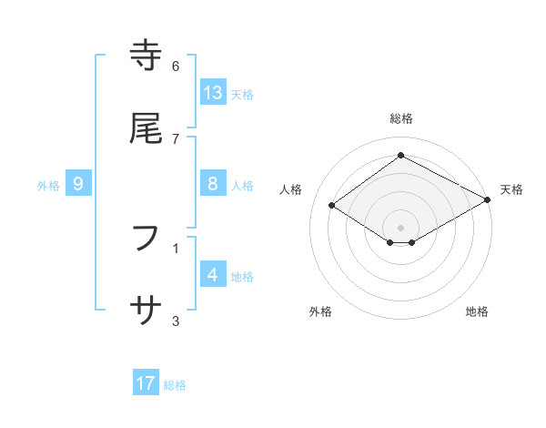 寺尾 フサさんを姓名の画数から五運を鑑定