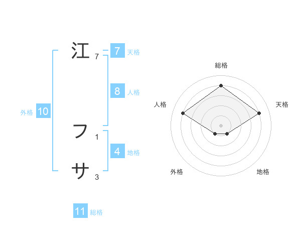 江 フサさんの総格は11画の4点!