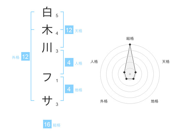白木川 フサさんの総格は16画の5点!