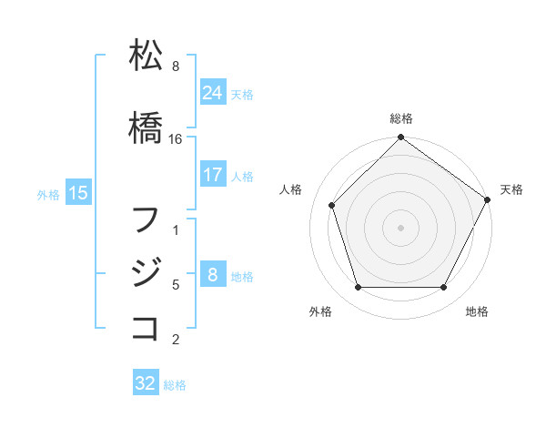 松橋 フジコさんの天格は24画の5点!