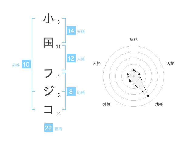 小国 フジコさんの総格は22画の1点!