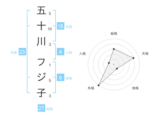 五十川 フジ子さんを姓名の画数から五運を鑑定