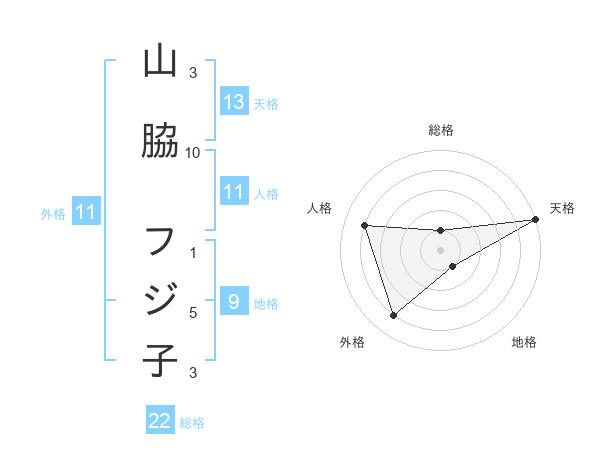 山脇 フジ子さんの総格は22画の1点