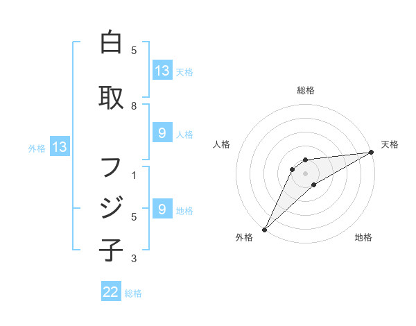白取 フジ子さんを姓名の画数から五運を鑑定