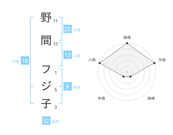 野間 フジ子さんを姓名の画数から五運を鑑定