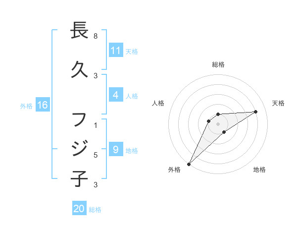 長久 フジ子さんの外格は16画の5点