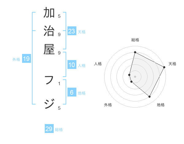 加治屋 フジさんの天格は23画の5点