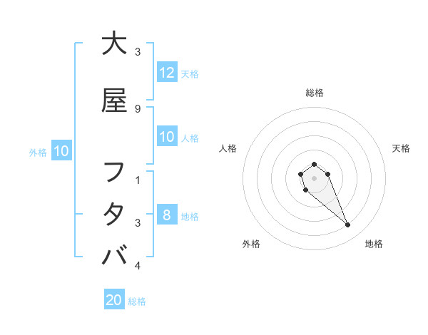 大屋 フタバさんを姓名の画数から五運を鑑定