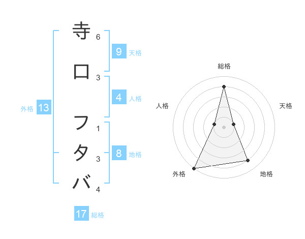 寺口 フタバさんの総格は17画の4点!