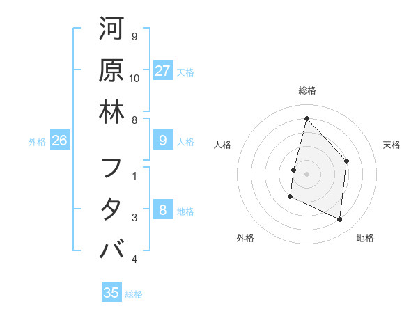 河原林 フタバさんを姓名の画数から五運を鑑定