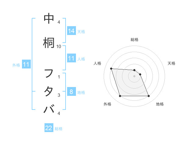 中桐 フタバさんを姓名の画数から五運を鑑定
