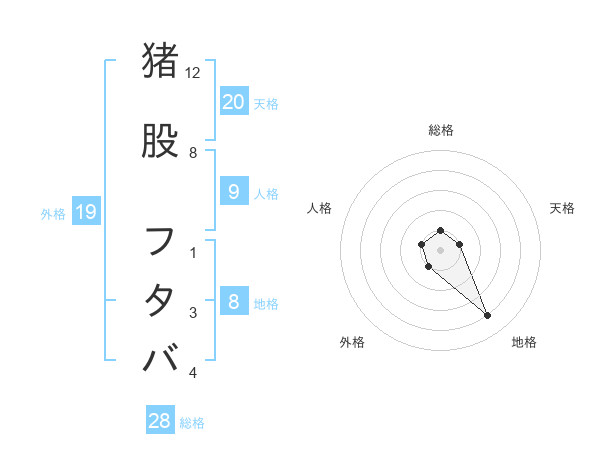 猪股 フタバさんを姓名の画数から五運を鑑定