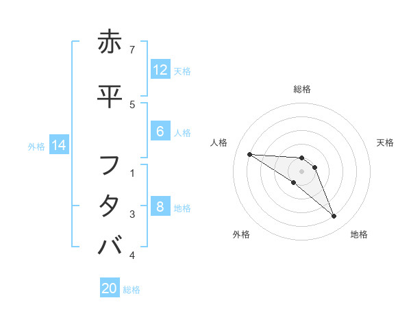 赤平 フタバさんの総格は20画の1点!