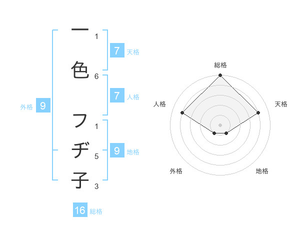 一色 フヂ子さんの総格は16画の5点!