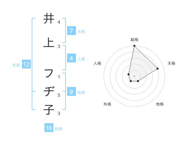 井上 フヂ子さんを姓名の画数から五運を鑑定