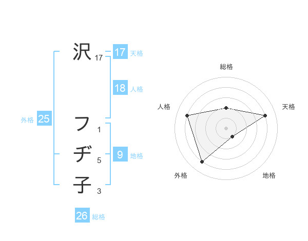 沢 フヂ子さんを姓名の画数から五運を鑑定