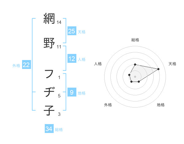 網野 フヂ子さんを姓名の画数から五運を鑑定