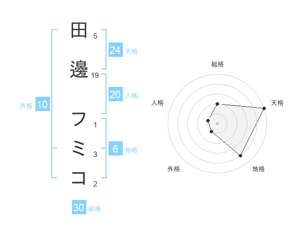 田邊 フミコさんの天格は24画の5点!