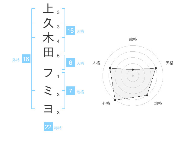 上久木田 フミヨさんを姓名の画数から五運を鑑定