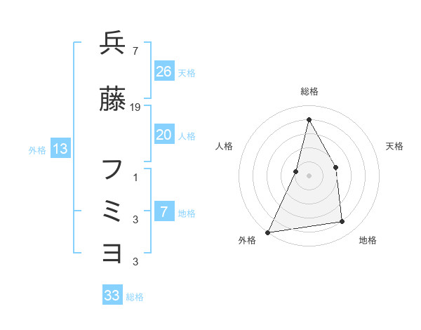 兵藤 フミヨさんの外格は13画の5点!