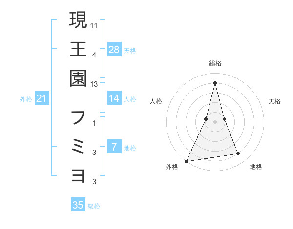 現王園 フミヨさんを姓名の画数から五運を鑑定
