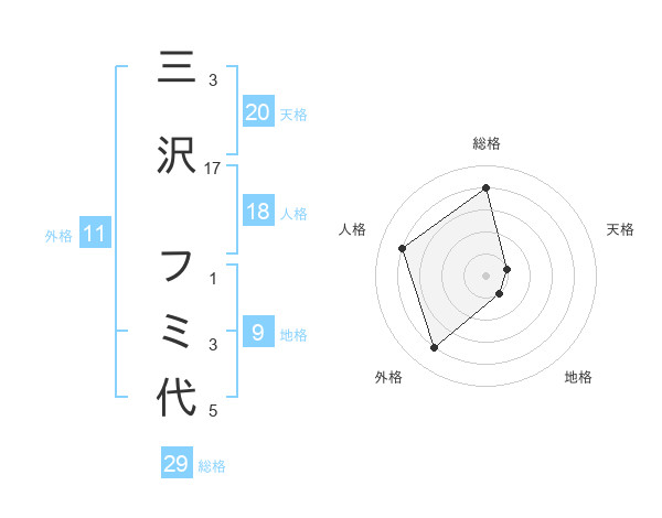 三沢 フミ代さんを姓名の画数から五運を鑑定