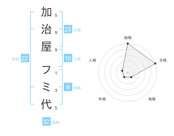 加治屋 フミ代さんを姓名の画数から五運を鑑定