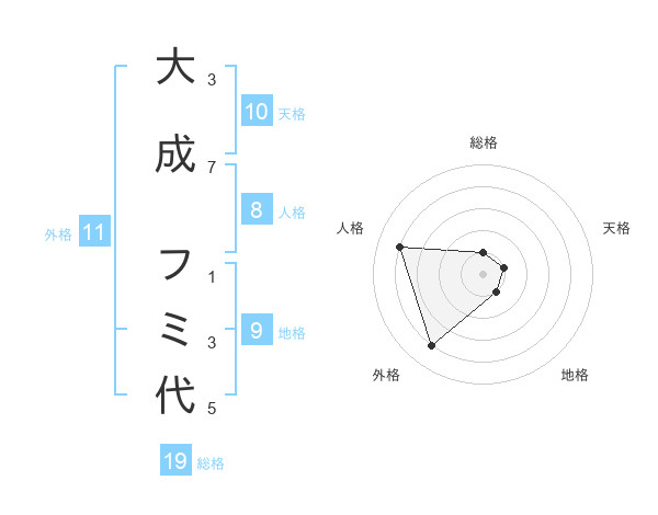 大成 フミ代さんを姓名の画数から五運を鑑定
