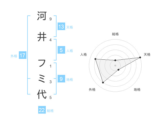 河井 フミ代さんの天格は13画の5点!