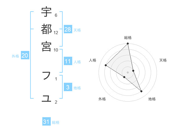 宇都宮 フユさんの総格は31画の5点