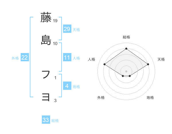 藤島 フヨさんを姓名の画数から五運を鑑定