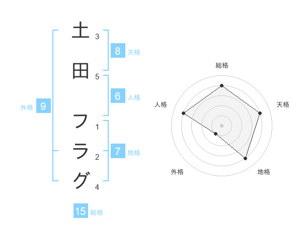 占い結果は姓名判断である以上、良い場合も悪い場合もありますが、決してお名前を誹謗中傷するものでなく、画数の自動計算によって得られたものです。また、本サイトの検索によって得られた鑑定結果で、第三者を誹謗中傷したり名誉を棄損するような行為を禁じます。